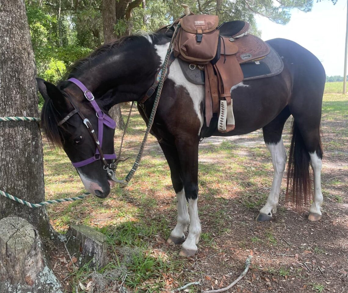 black and white paint mare that anyone can ride. No bucking or rearing no